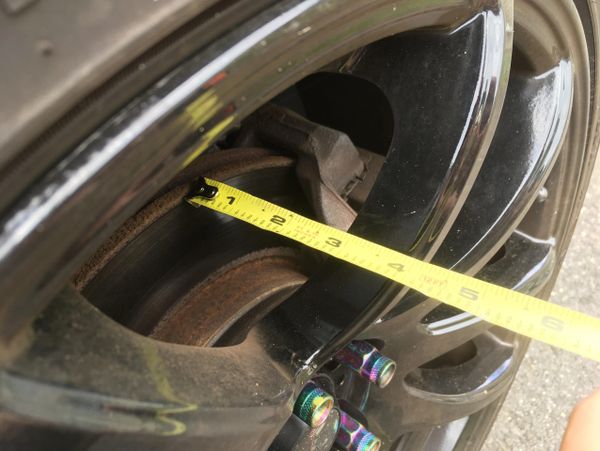 This measurement will help me determine if your wheels will clear the big brake kits. Also I need to know your wheel diameter.